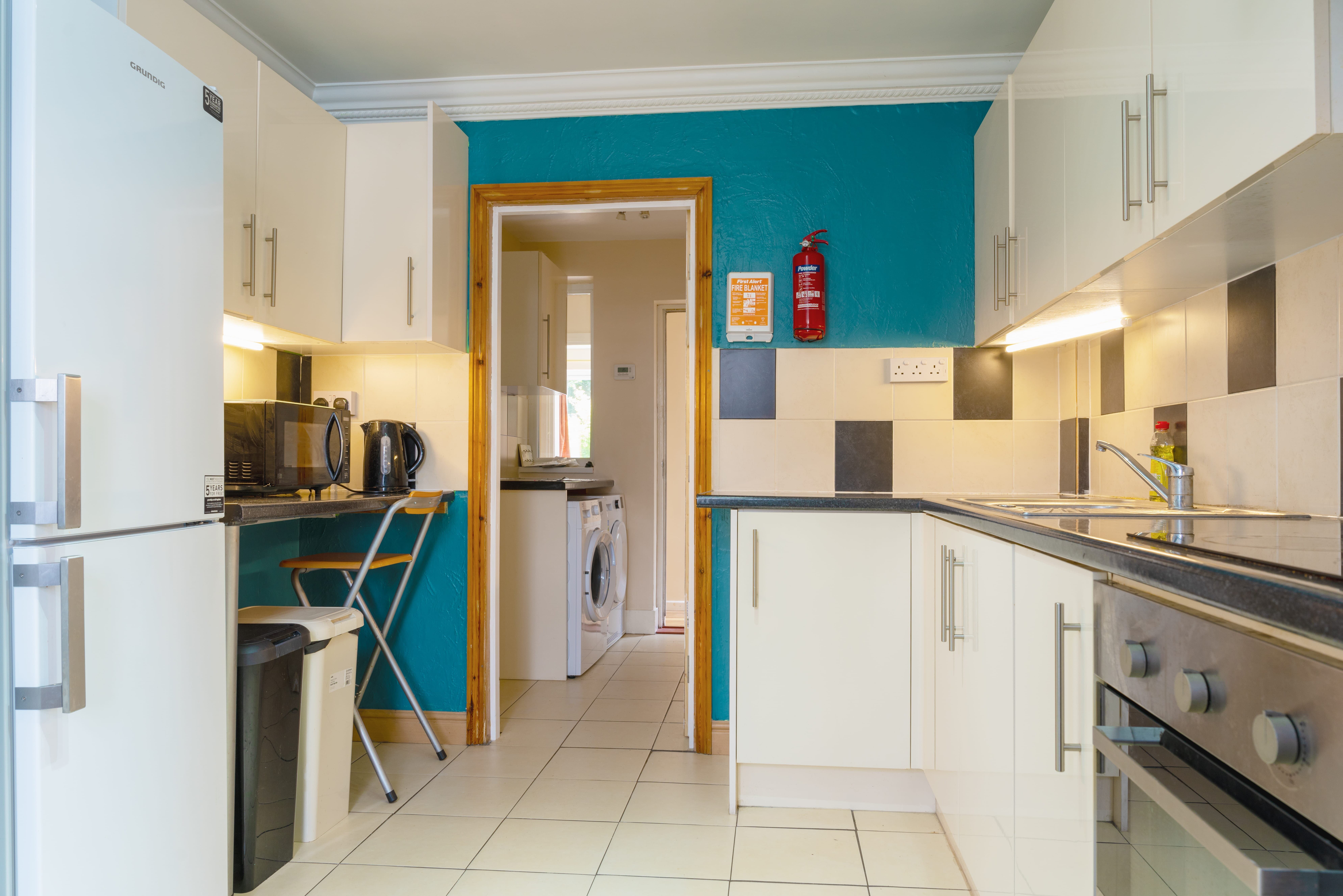 The kitchen benefits from ample storage and cupboard space, housing all the needs of a student, with 2 large fridge freezers, oven, hob, toaster, kettle and microwave. There is also a dedicated utility area housing a washing machine and tumble dryer adjacent to the kitchen.